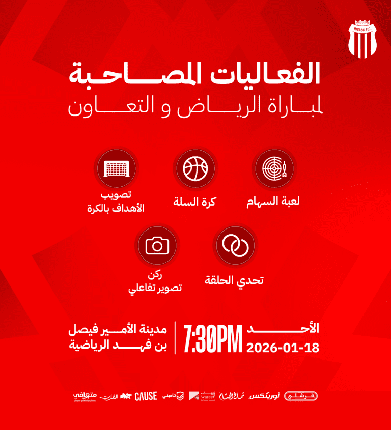 جمهورنا الغالي ندعوكم لحضور الفعاليات المصاحبة لـمباراة الرياض و الاتفاق